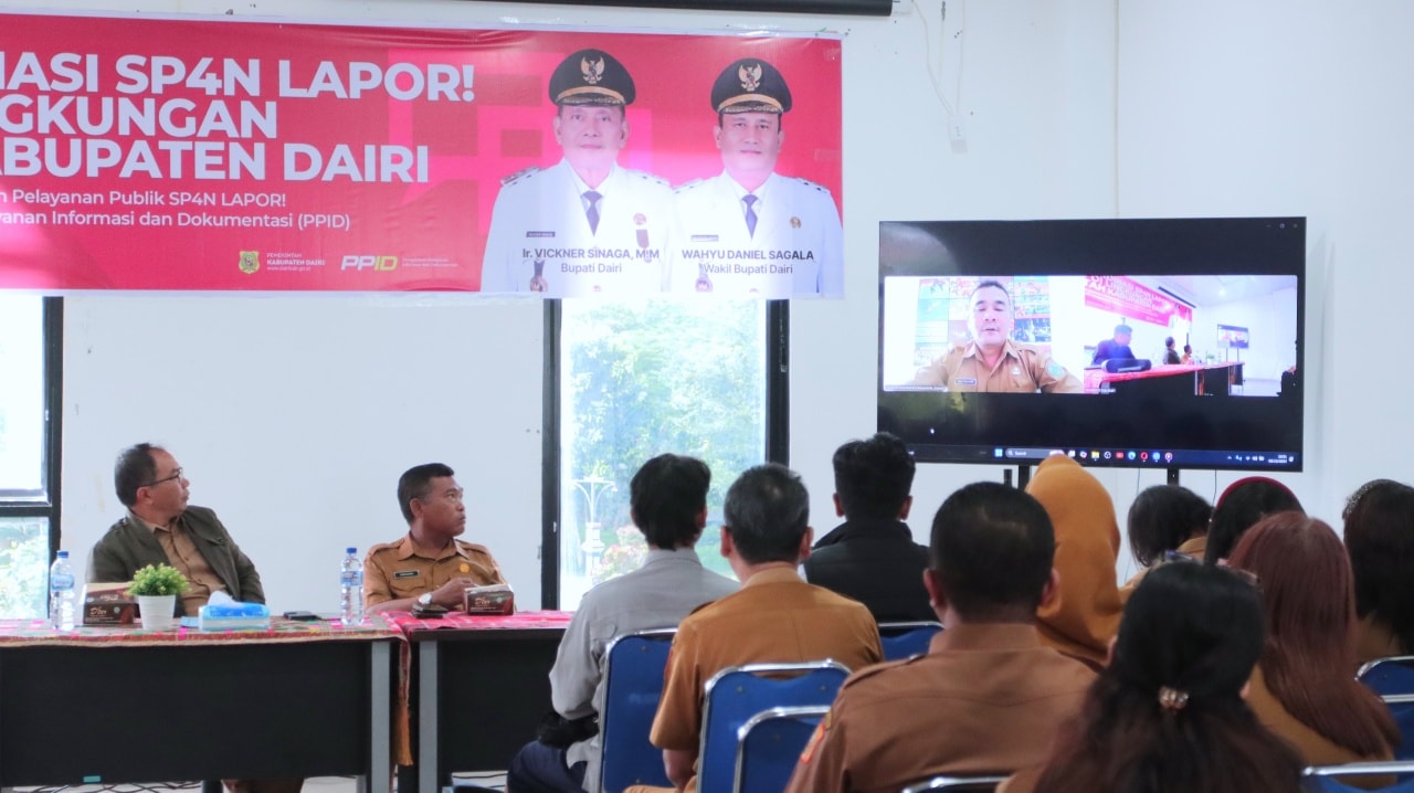 tigasisinews.id, DAIRI – Pemerintah Kabupaten Dairi melalui Dinas Komunikasi dan Informatika mengadakan Rapat Koordinasi (Rakor) Sistem Pengelolaan Pengaduan Pelayanan Publik Nasional (SP4N) Lapor! dan Pejabat Pengelola Informasi dan Dokumentasi (PPID) di lingkungan Pemkab Dairi, Selasa (2/12/2025) di Gedung PLUT, Taman Rekreasi Sidikalang. Rakor tersebut dibuka oleh Sekretaris Daerah Surung Charles Bantjin yang diwakili oleh Asisten Perekonomian dan Pembangunan Junihardi Siregar.