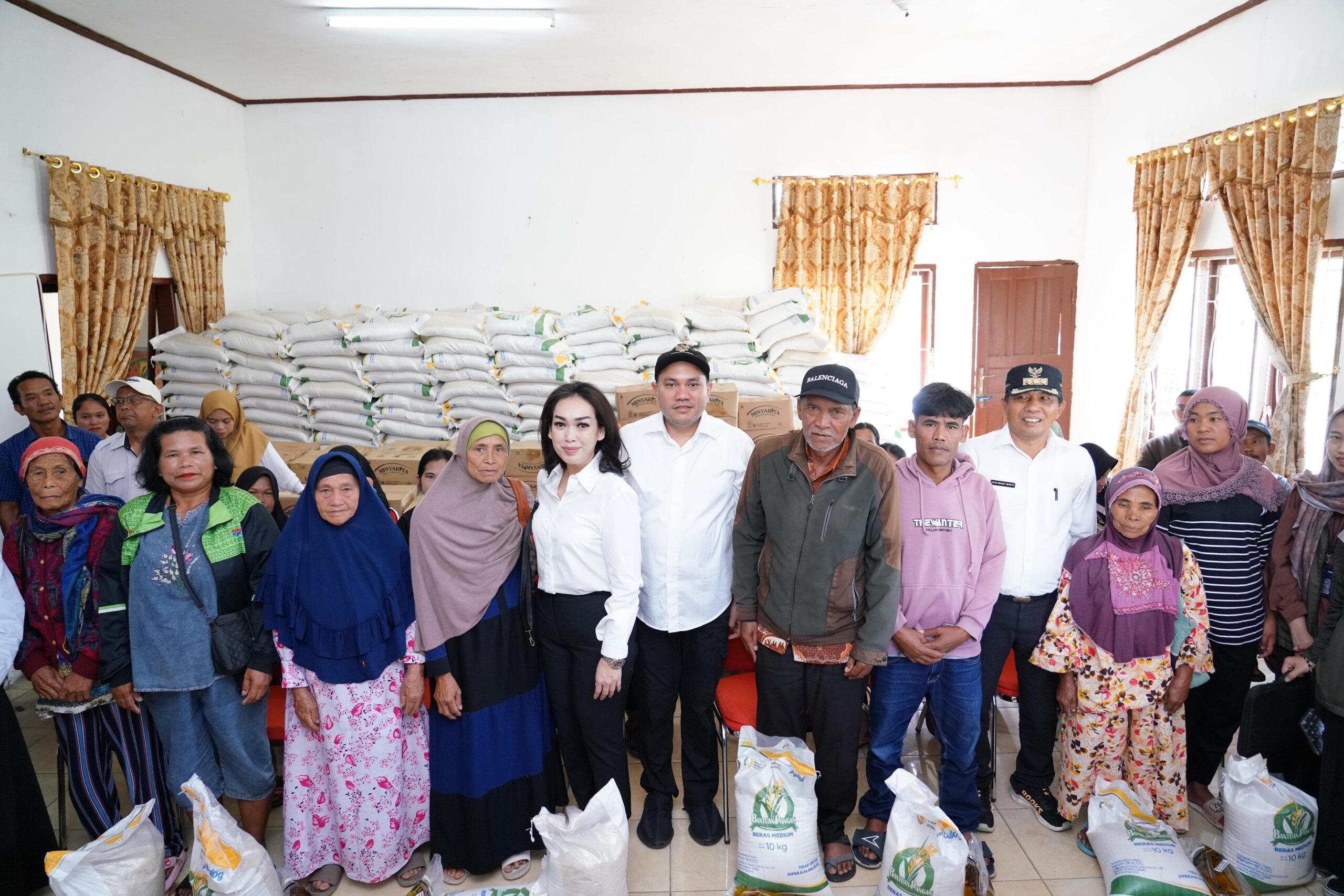 Penyaluran bantuan pangan beras dan minyak goreng ini dilaksanakan secara simbolis di aula Kantor Camat Sitellu Tali Urang Julu.