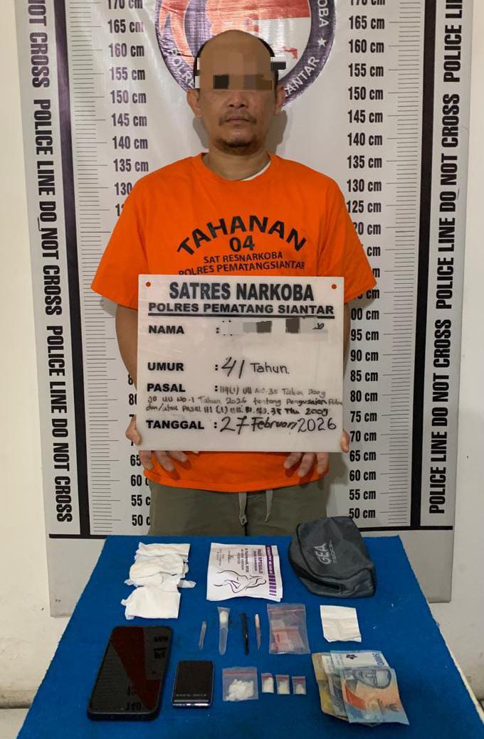 Kepala Sat Res Narkoba, AKP Irwanta Sembiring menyampaikan, berkat informasi dari masyarakat, personel unit lidik 2 berhasil menangkap HA dari Jalan Penyabungan, Kelurahan Timbang Galung, Kecamatan Siantar Barat, Kota Pematangsiantar, pada Jumat (27/2/2026), pagi sekira pukul 08.45 WIB.