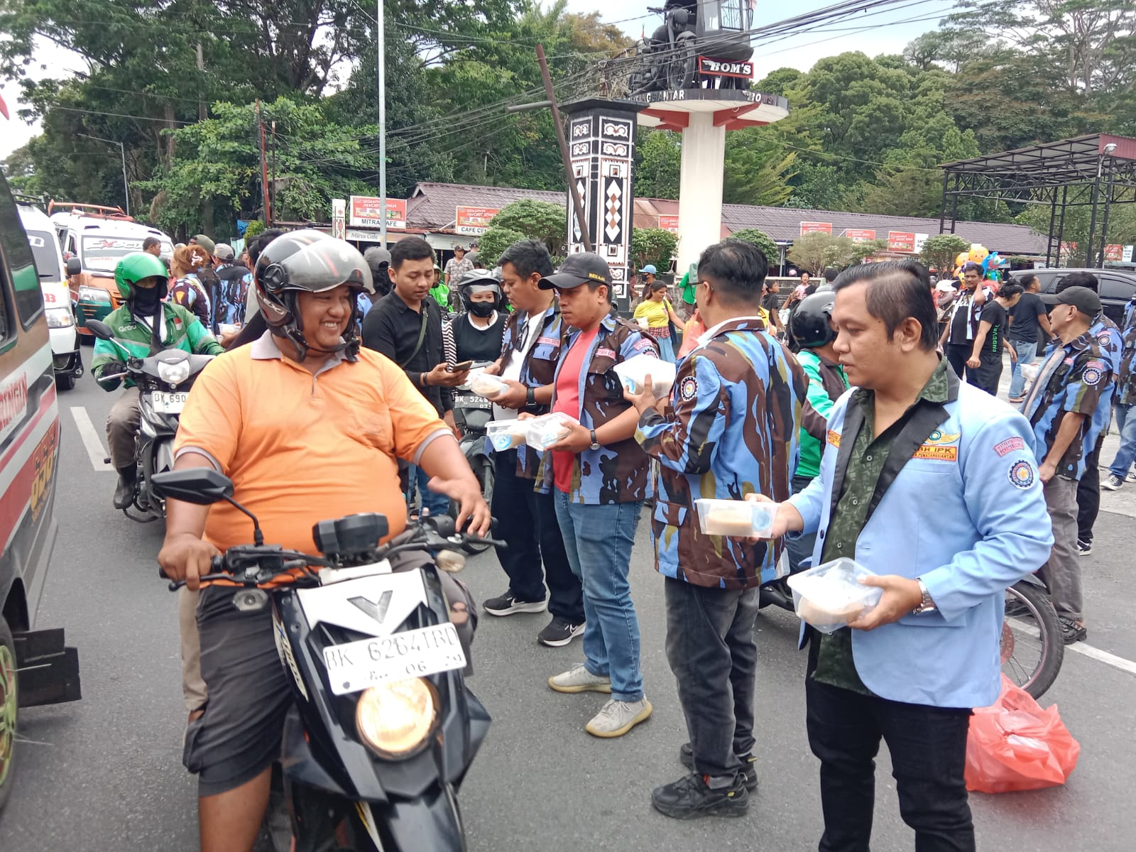 Antusias warga menerima takjil gratis membuat suasana humanis terbangun antar masyarakat dengan oknum ormas.